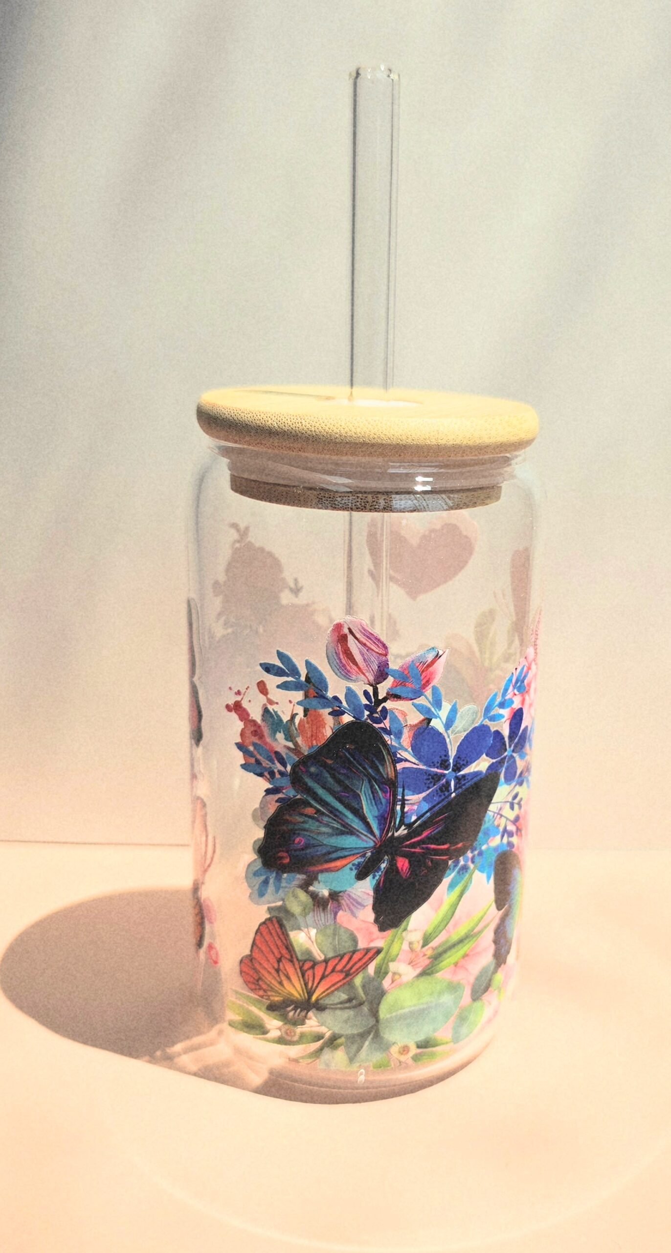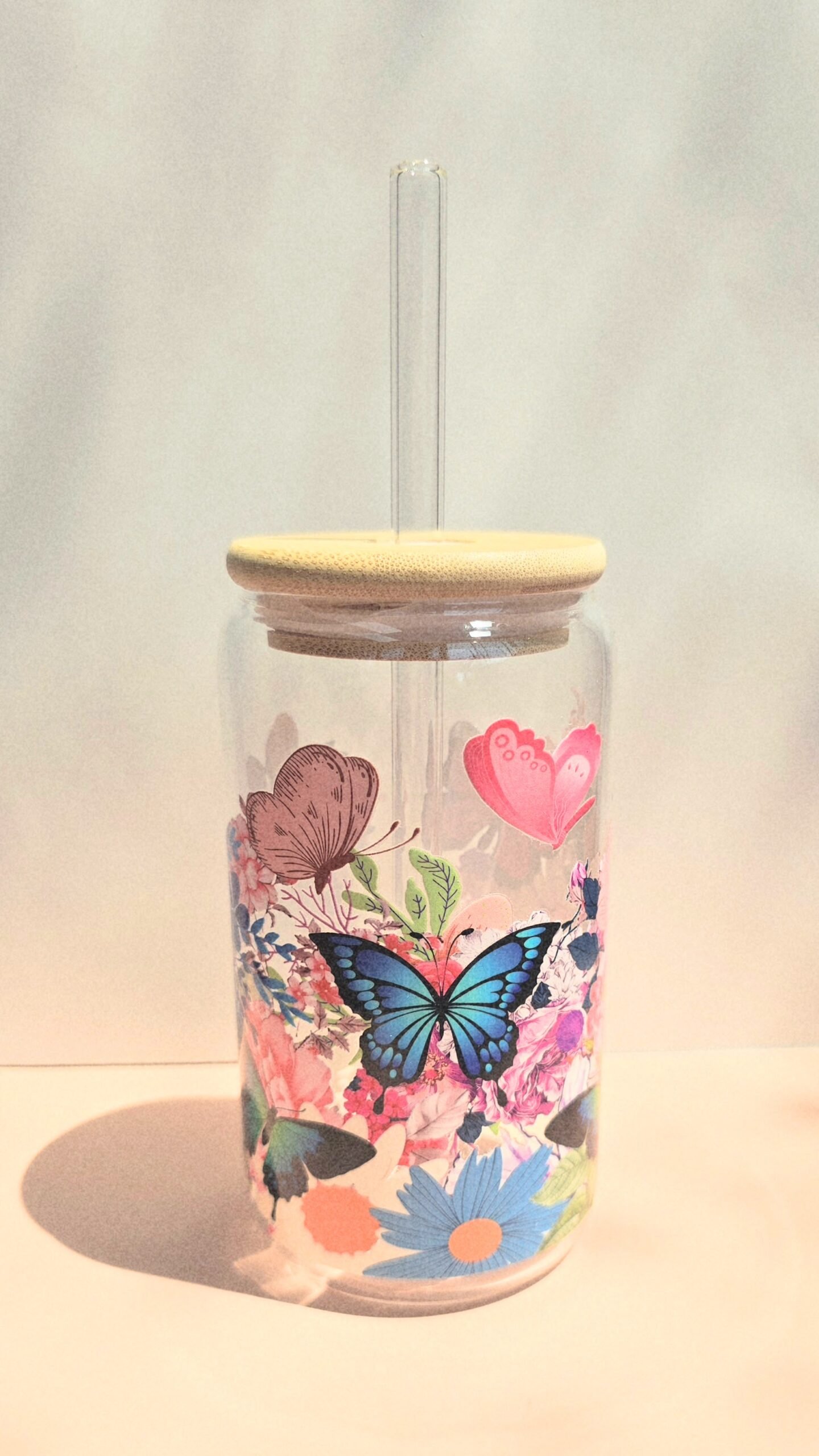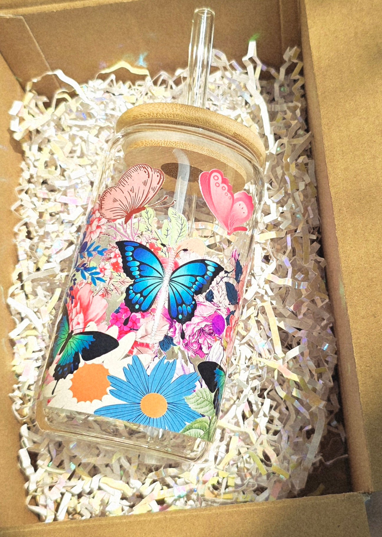 Brighten your day with our Butterfly Bloom Glass Tumbler! This enchanting 16oz glass cup features a vibrant bouquet of florals and butterflies in a dreamy, spring-inspired design. Crafted from durable borosilicate glass, it includes a secure bamboo lid and a reusable glass straw—perfect for iced coffee, tea, smoothies, or water. The stunning wraparound art brings a touch of nature to your daily routine and makes this tumbler a standout gift for moms, besties, teachers, or anyone who needs a little color and calm in their life.