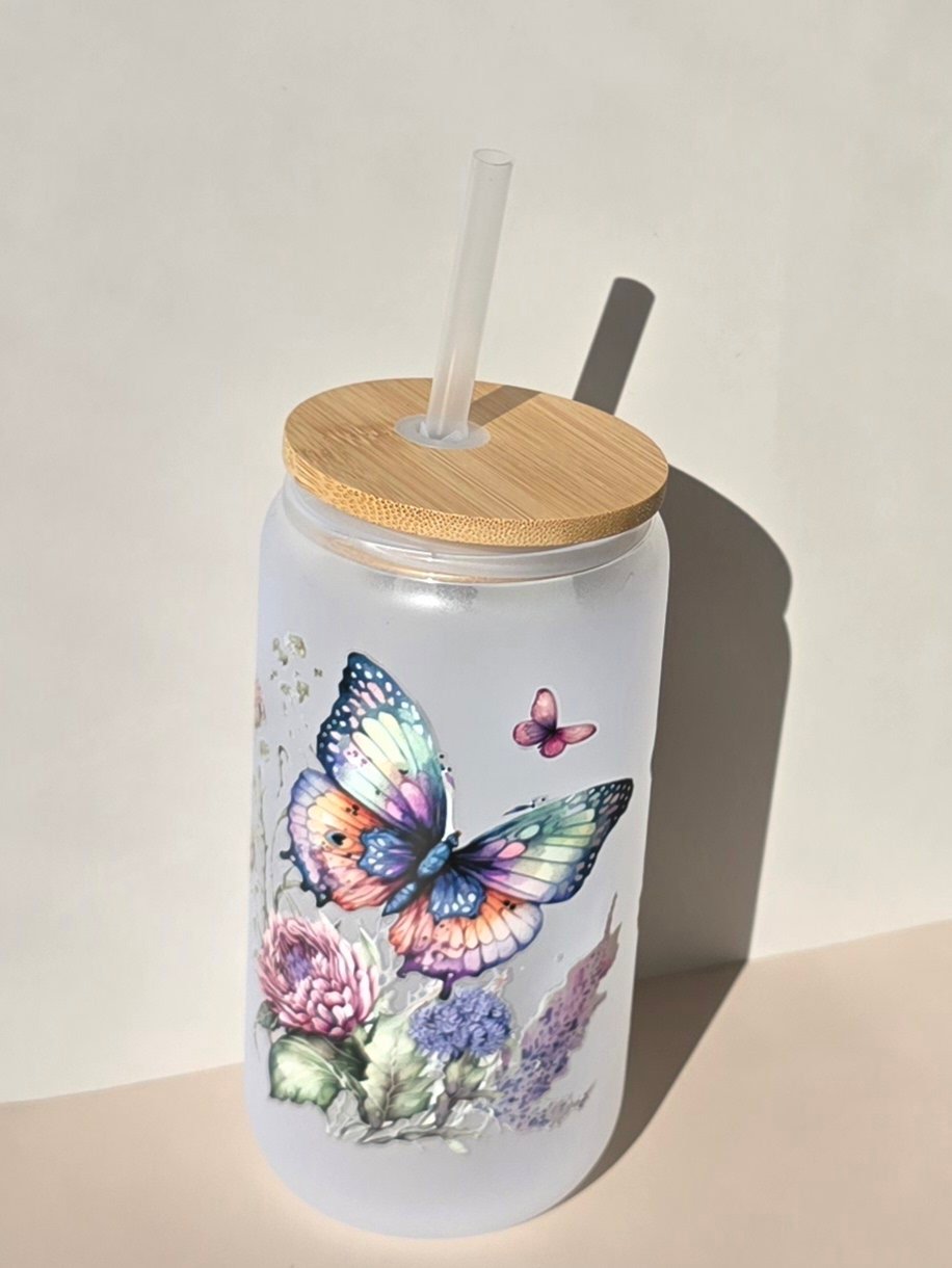 Sip in style with this enchanting Butterfly Floral Frosted Glass Tumbler! Featuring a dreamy design of colorful butterflies fluttering above delicate wildflowers, this 16oz glass is both functional and beautiful. The frosted finish adds a modern touch, while the eco-friendly bamboo lid and reusable straw make it perfect for your on-the-go lifestyle. Whether you’re enjoying iced coffee, infused water, or a fresh smoothie, this tumbler brings a calming, nature-inspired vibe to your daily routine.