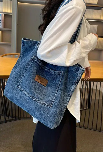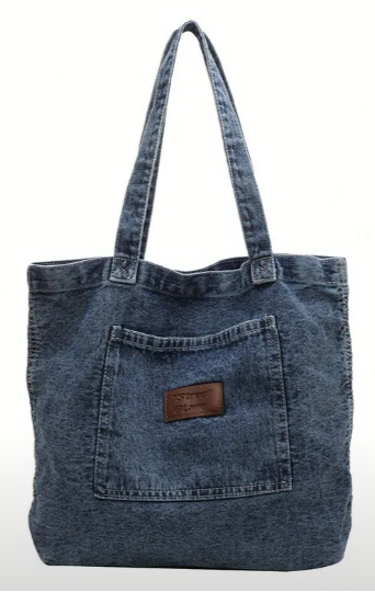 Carry your essentials in style with the Denim Tote Bag — a modern twist on a timeless classic. Crafted from durable, stonewashed denim, this tote features a large front pocket with a stitched leather-style patch and reinforced handles for everyday reliability. Roomy enough for your laptop, books, or market finds, it’s your new go-to for school, work, shopping, or laid-back weekends. With its vintage-inspired aesthetic and urban edge, this bag is built for fashion and function.