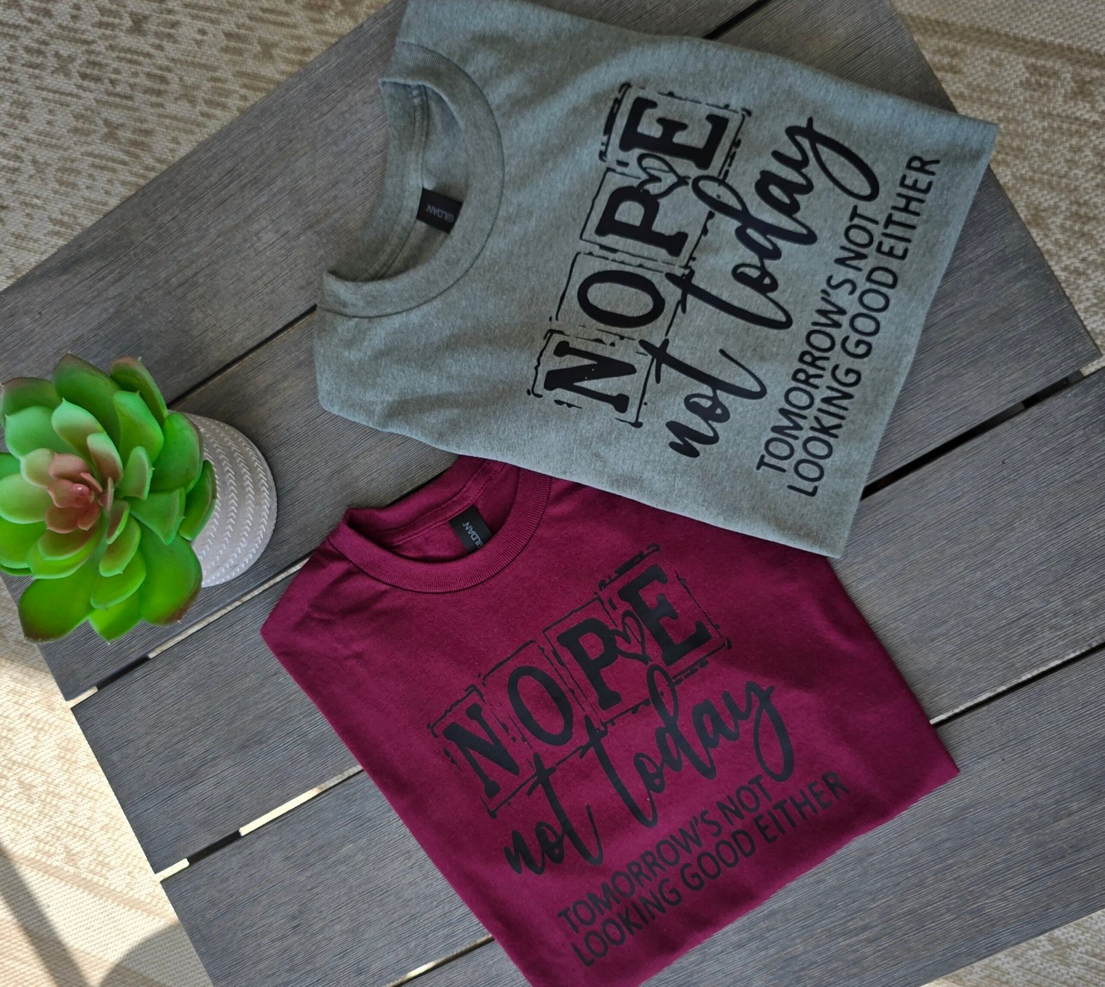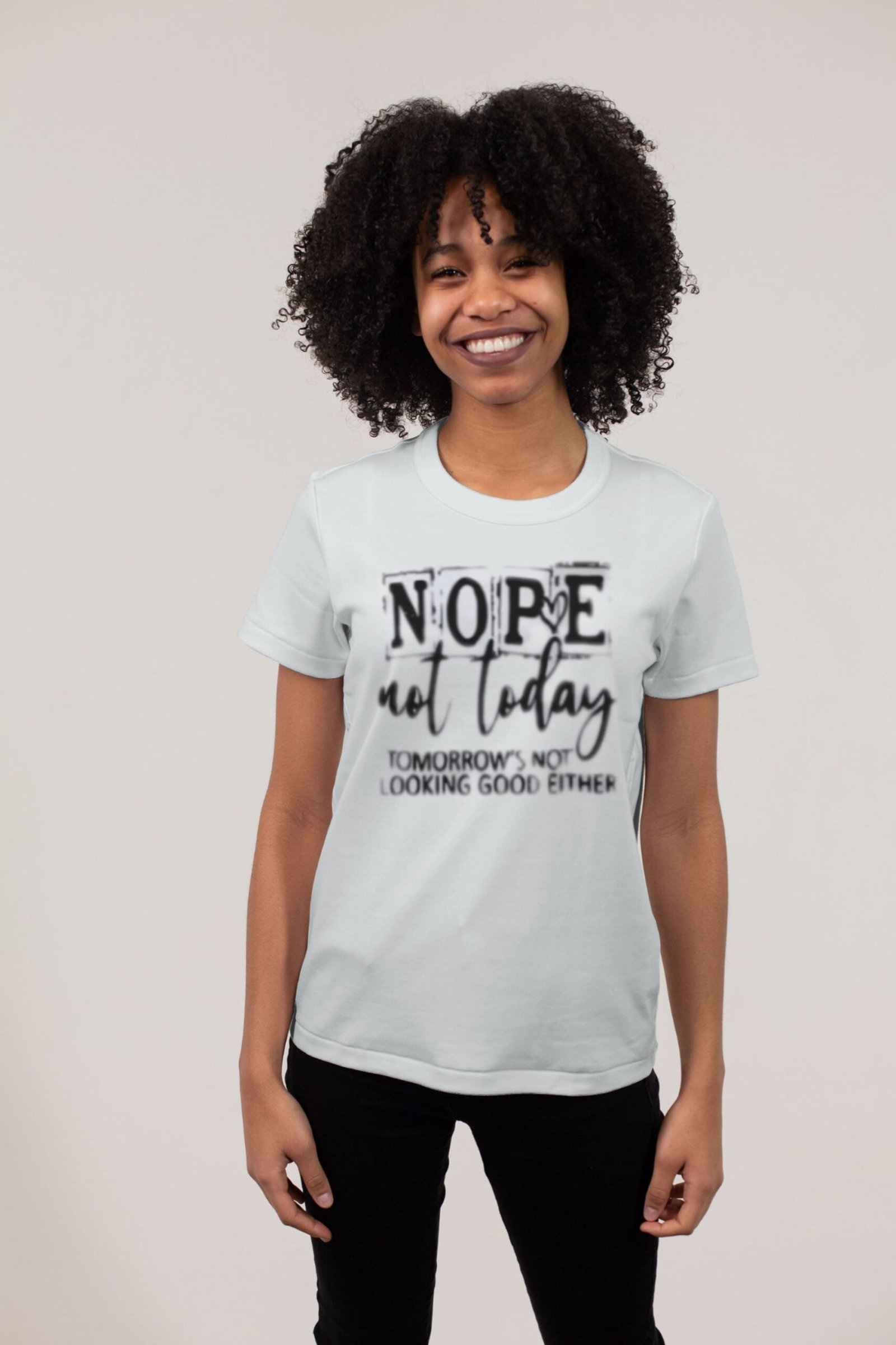 Stay stylish and sassy with our “Nope Not Today” graphic tee! Available in a variety of colors and sizes, each shirt is made to order for the perfect fit and look. Comfortable, trendy, and effortlessly bold—because some days, you just can’t.