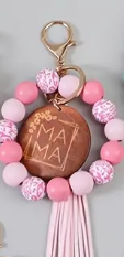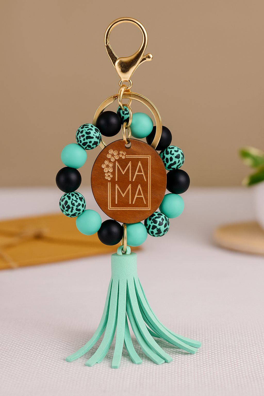 Celebrate motherhood in style with this trendy “MAMA” Beaded Keychain! Featuring a beautifully engraved wooden charm, bold black and white patterned beads, and a soft mauve tassel, this accessory adds flair to your keys, bags, or diaper bag. The sturdy lobster clasp makes it easy to attach to purses or backpacks, while the lightweight design ensures it’s as practical as it is fashionable. A perfect gift for moms, Mother’s Day, baby showers, or just because!